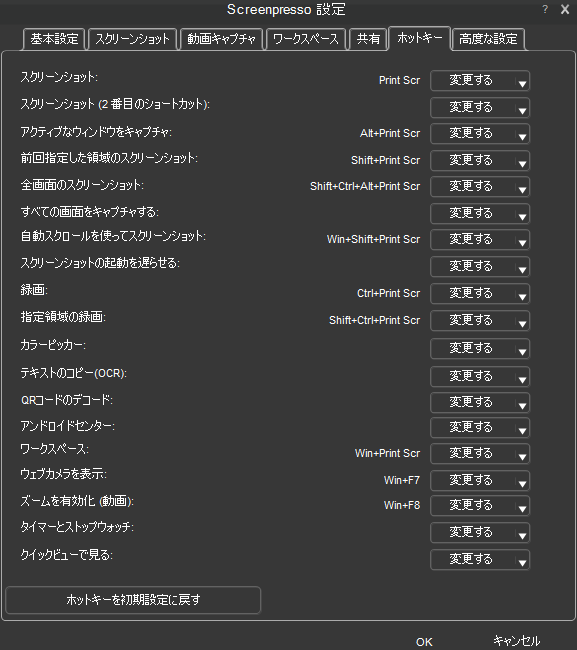 - 必要に応じてScreenpressoの設定画面でショートカットキーを変更できます。